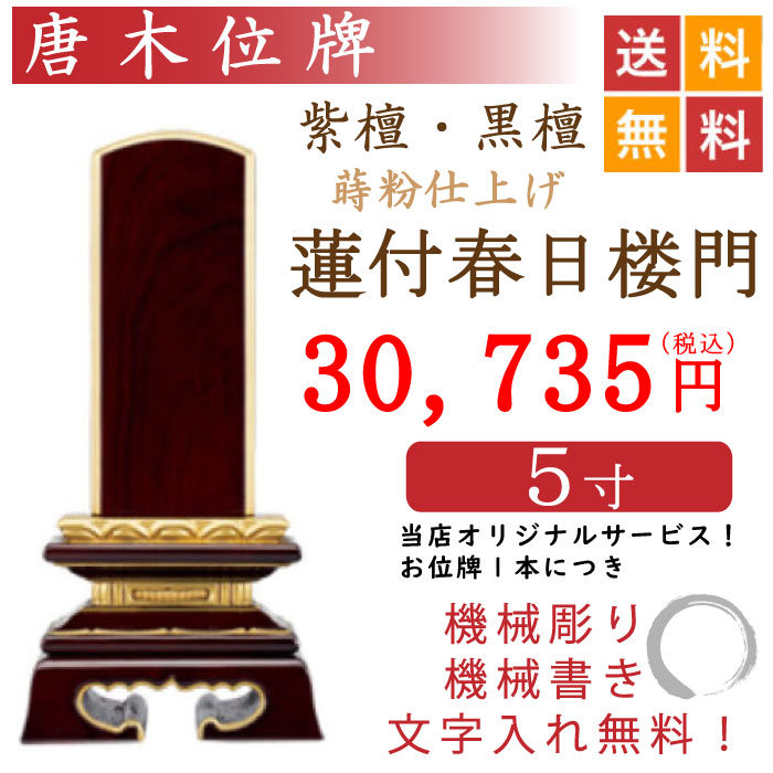 唐木位牌(紫檀・黒檀)「蒔粉仕上げ 蓮付春日楼門 5寸」