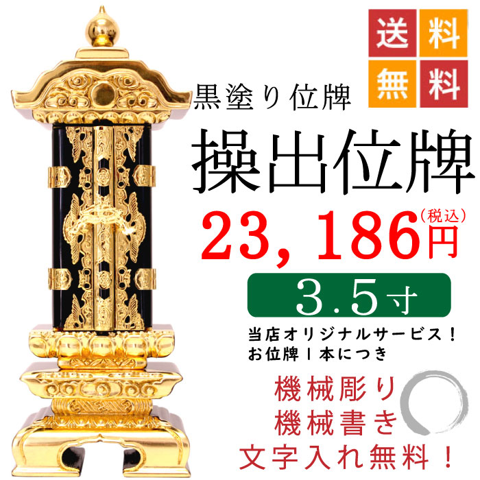備考 | 【商品詳細】 古くから伝わる代表的な繰り出し位牌。浄土真宗の門徒の方を中心に最も普及している一品です。屋根まわりや台座の彫刻が非常に豪華で、金箔の装飾が映えます。【文字入れについて】 当店のオリジナルサービスとして、『手書き文字代』及び『機械彫り文字』は新調されたお位牌1本につき1霊まで無料です。 注文時、「専用申し込みフォーム」より戒名及び法名をご記入ください。旧字体や変換しても出てこない文字がある場合には該当する文字の部分に「○」とご記入ください。ご注文いただいてから当店より確認の御連絡をさせていただきます。その他ご質問やご要望がございましたらお気軽に御連絡ください。ご不明な点やご要望などございましたらお気軽にご連絡ください。 ※お位牌をご注文いただいた全ての方に「確認用レイアウト」をメール又はFAXにて送付いたします。お客様に確認いただいた後に製作へと進ませていただきます。 |