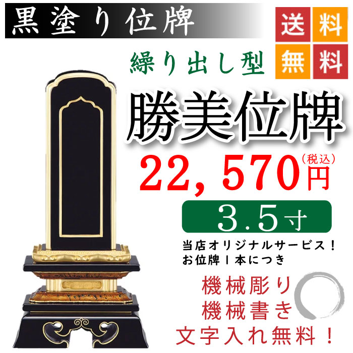 黒塗り位牌 繰り出し型 「勝美位牌 3.5寸」