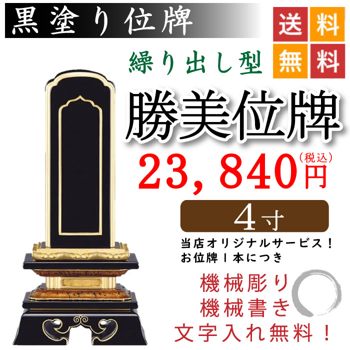 | 商品名 | 黒塗り繰り出し位牌 勝美位牌 4寸