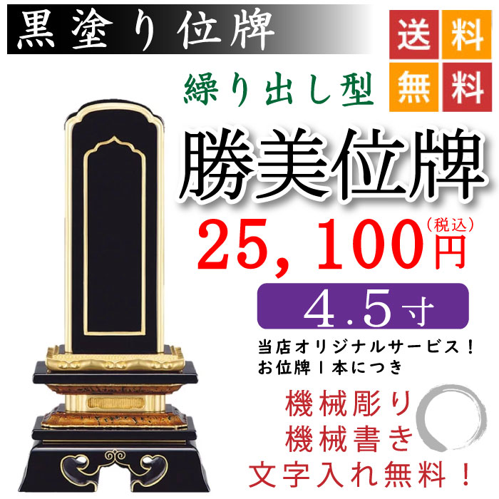商品名 黒塗り繰り出し位牌 勝美位牌 4.5寸